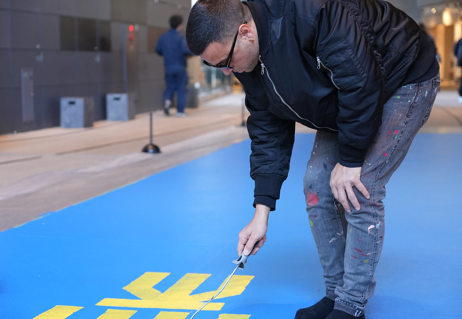 ストリートアーティストのラウル(RAUL)が、渋谷ストリームホール2F通路で制作した作品が完成しました。1月20日から22日に行われたライブペインティングを経て、ラウル(RAUL)独自のシンボルが鮮やかな青色のベースに表現され、ストリートアートの聖地である渋谷に新たな印象を与えています。渋谷を訪れた際には、その迫力をぜひご覧ください。
